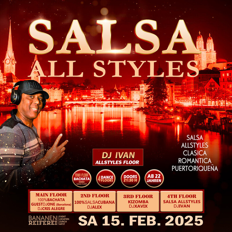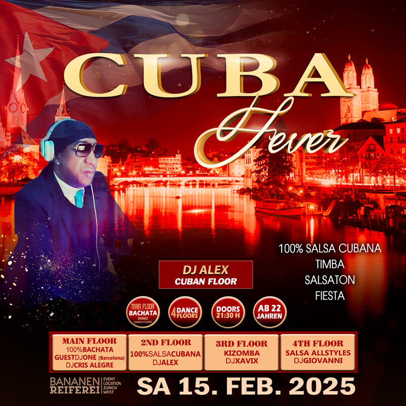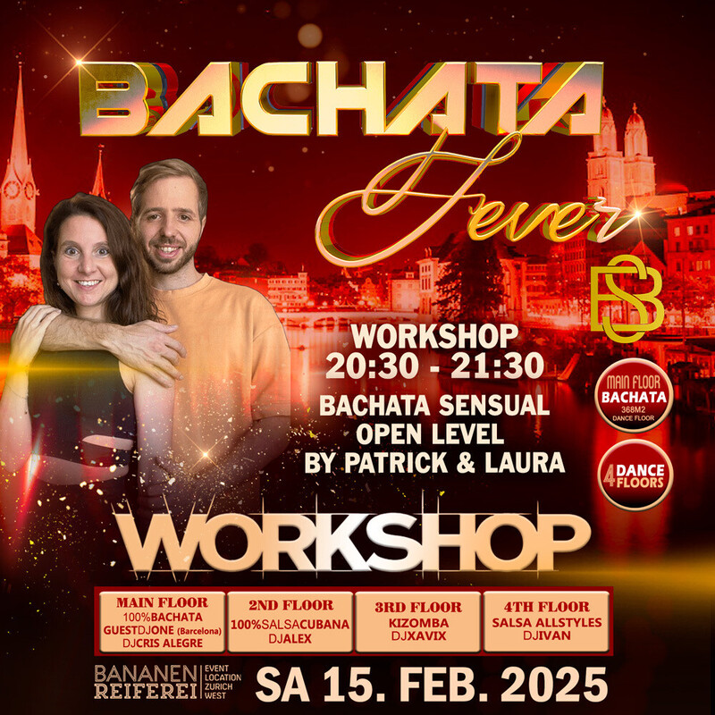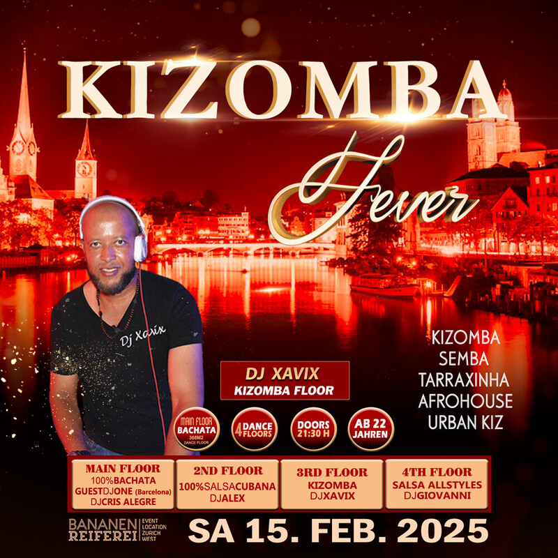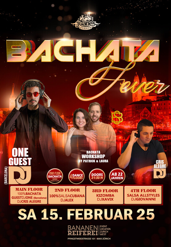 🔥 BACHATA FEVER 🔥 DJ ONE Barcelona & Dj Cris Alegre, Inkl. Workshop Bananenreiferei by Juanes 🔥🔥🔥 ● 4 DANCE FLOORS ● AB 22 JAHREN ● DOORS: 21:30 – 04:00 UHR ● EINTRITT CHF 20.- ● EINTRITT: BEZAHLUNG AN DER KASSE NUR BARGELD ● GRATIS GARDEROBE ● 300 AUTO PARKPLÄTZE 🔥🔥🔥 20:30 Uhr WORKSHOP BY PATRICK & LAURA VON BACHATA SENCE ● STYLE: SENSUAL ● LAVEL: OPEN LAVEL ●●● Sie brauchen nicht zu buchen, kommen Sie direkt zum Bananenreiferei am Samstag 15. Februar 2025 um 20:15 Uhr. Der Workshop Preis ist CHF 25.- Inkl. Garderobe & Party auf 4 Dance Floors. 🔥🔥🔥 ● MAIN FLOOR: 100% BACHATA FEVER (371 m2 Dance Floor) ● DJ ONE aus Barcelona ● DJ CRIS ALEGRE Bachata Fusion, Sensual, Moderna, Clasica, Del Recuerdo 🔥🔥🔥 🔥 2ND FLOOR: 100% SALSA CUBANA: DJ ALEX 100% Salsa Cubana, Timba, Rumba,Fiesta. 🔥🔥🔥 ● 3RD FLOOR: KIZOMBA FEVER: DJ XAVIX Kizomba, Semba, Tarraxinha, Afrohouse, Urban Kiz 🔥🔥🔥 🔥 4TH FLOOR: SALSA ALLSTYLES DJ GIOVANNI Salsa Allstyles, Clasica, Puertorriqueña, Romantica 🔥🔥🔥 BANANENREIFEREI Pfingstweidstrasse 101 8005 Zürich 🔥🔥🔥 SEARCH MAP https://search.ch/.../Bananenreiferei,Z%C3%BCrich... 🔥🔥🔥 DATES BACHATA FEVER 2025 BANANENREIFEREI Sa 15. Februar 2025 Sa 15. März 2025 SA 19. April 2025 Sa 17. Mai 2025 Sa 21. Juni 2025 sa 12. Juli 2025 Sa 16. August 2025 Sa 18. Oktober 2025 Sa 15. November 2025 Sa 20. Dezember 2025 🔥🔥🔥 Bienvenidos Juanes Events http://juanesevents.ch/