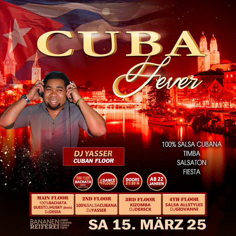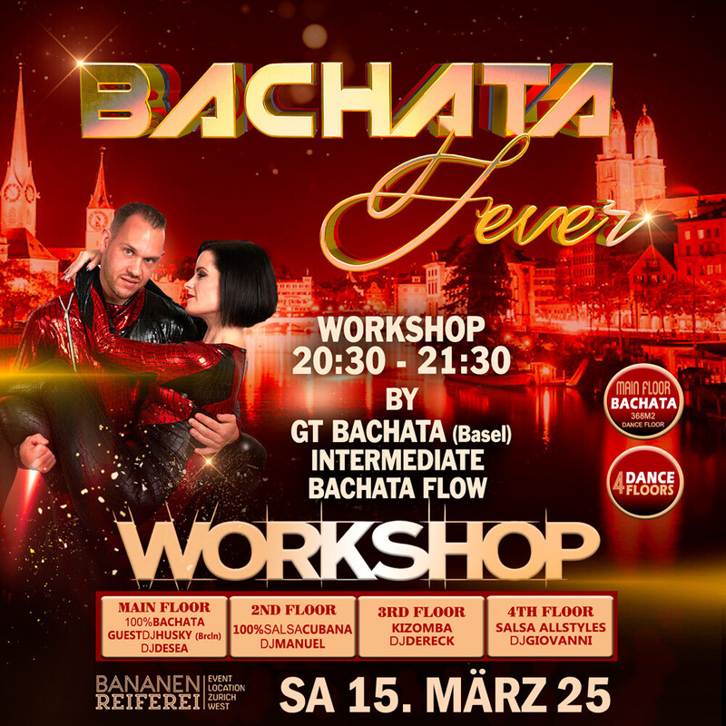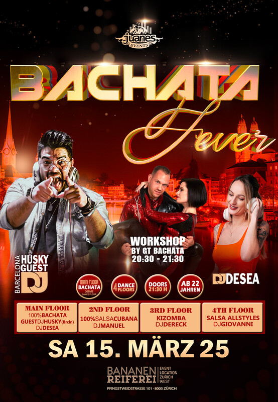 đŸ”„ BACHATA FEVER đŸ”„ DJs HUSKY & DESEA / Workshop mit GT Bachata Bananenreiferei đŸ”„đŸ”„đŸ”„ ● 4 DANCE FLOORS ● AB 22 JAHREN ● DOORS: 21:30 – 04:00 UHR ● EINTRITT CHF 20.- ● EINTRITT: BEZAHLUNG AN DER KASSE NUR BARGELD ● GRATIS GARDEROBE ● 400 AUTO PARKPLÄTZE đŸ”„đŸ”„đŸ”„ 20:30 Uhr WORKSHOP BY GT BACHATA BASEL STYLE: BACHATA FLOW LABEL: INTERMEDIATE đŸ”„ Sie brauchen nicht zu buchen, kommen Sie direkt zum Bananenreiferei am Samstag 15. MĂ€rz 25 um 20:15 Uhr. Der Workshop Preis ist CHF 25.- Inkl. Garderobe & Party auf 4 Dance Floors. đŸ”„đŸ”„đŸ”„ ● MAIN FLOOR: 100% BACHATA FEVER (371 m2 Dance Floor) ● GUEST DJ HUSKY (Barcelona) ● DJ DESEA Bachata Fusion, Sensual, Moderna, Clasica, Del Recuerdo đŸ”„đŸ”„đŸ”„ ● 2ND FLOOR: 100% SALSA CUBANA: ● DJ MANUEL 100% Salsa Cubana, Timba, Rumba,Fiesta. đŸ”„đŸ”„đŸ”„ ● 3RD FLOOR: KIZOMBA FEVER: ● DJ DERECK Kizomba, Semba, Tarraxinha, Afrohouse, Urban Kiz đŸ”„đŸ”„đŸ”„ ● 4TH FLOOR: SALSA ALLSTYLES ● DJ IVAN Salsa Allstyles, Clasica, Puertorriqueña, Romantica đŸ”„đŸ”„đŸ”„ BANANENREIFEREI Pfingstweidstrasse 101 8005 ZĂŒrich đŸ”„đŸ”„đŸ”„ SEARCH MAP https://search.ch/.../Bananenreiferei,Z%C3%BCrich... đŸ”„đŸ”„đŸ”„ DATES BACHATA FEVER 2025 BANANENREIFEREI Sa 15. MĂ€rz 2025 SA 19. April 2025 Sa 17. Mai 2025 Sa 21. Juni 2025 sa 12. Juli 2025 Sa 16. August 2025 Sa 18. Oktober 2025 Sa 15. November 2025 Sa 20. Dezember 2025 đŸ”„đŸ”„đŸ”„ Bienvenidos Juanes Events https://juanesevents.ch/