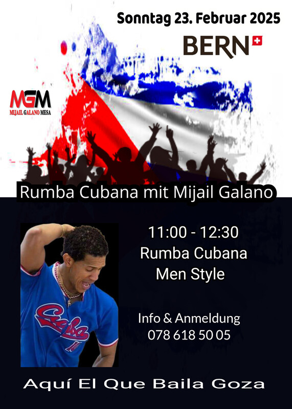 A Rumbear Rumberos Workshop Rumba Cubana in Bern mit Mijail Galano 11:00 - 12:30 Rumba Cubana Men Style Info & Anmeldung 078 618 50 05 Aquí El Que Baila Goza www.mijailgalano.ch