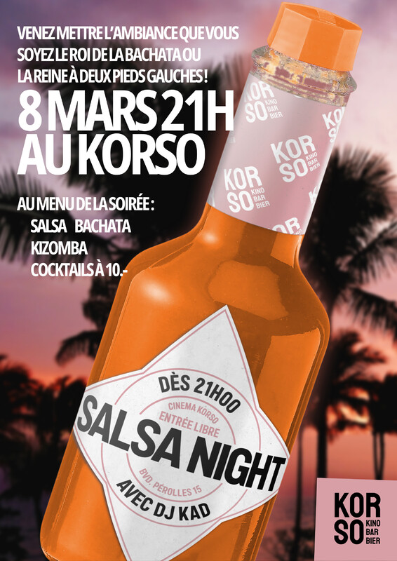 Soirée SBK au Korso animée par le mythique DJ KAD. Au menu de la soirée : - Salsa, Bachata, Kizomba - Entrée libre - Cocktails à 10.- Venez mettre l'ambiance que vous soyez la reine de la Salsa - bachata - kizomba ou le roi à deux pieds gauches ! Dj Kad a commencé son activité de DJ en 1997 et n'as jamais arrêté de faire danser Fribourg depuis. Expert de la SBK, il assure une ambiance géniale partout où il met les pieds. www.kad-events.ch