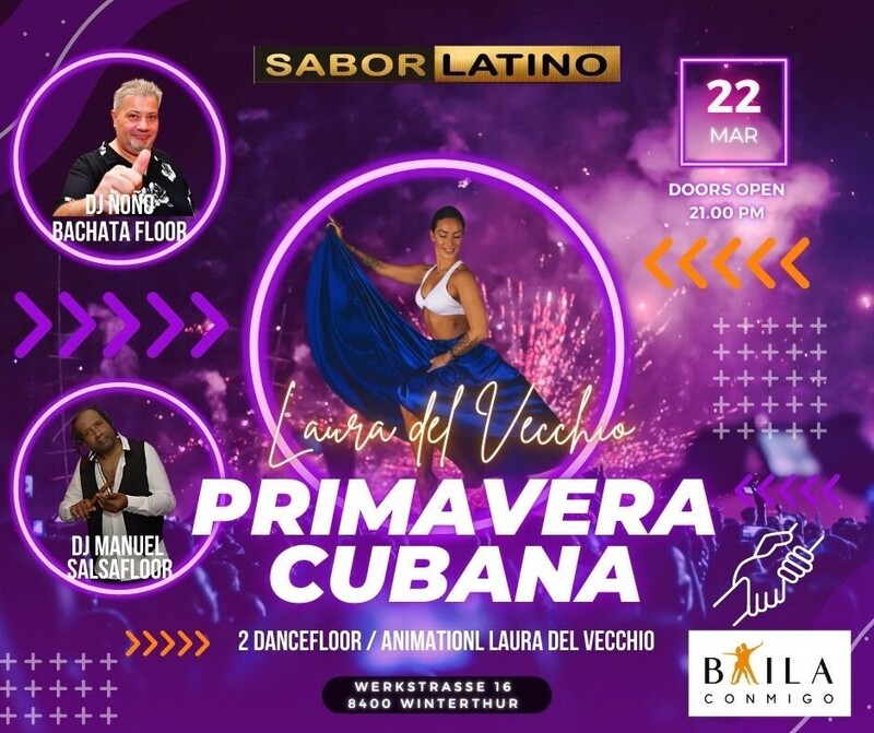 🌴🔥 PRIMAVERA CUBANA – Das Latin-Event des Frühlings! 🔥🌴 Mach dich bereit für eine unvergessliche Nacht voller heißer Rhythmen, mitreißender Tänze und purer Latin-Vibes! 💃🏽✨ 📅 Datum: 22. März ⏰ Beginn: 21:00 Uhr 📍 Location: Werkstrasse 16, 8400 Winterthur 🎶 Zwei Dancefloors – doppelte Leidenschaft! 🎧 DJ NONO bringt euch die schönsten Bachata-Beats auf dem Bachata Floor. 🎧 DJ MANUEL sorgt mit feurigen Salsa-Hits für unvergessliche Momente auf dem Salsa Floor. 🔥 Special Animation mit der fantastischen Laura del Vecchio! Sie wird die Tanzfläche mit ihrer Energie und Leidenschaft zum Beben bringen! 💃🏽 Lass dich von den lateinamerikanischen Rhythmen verzaubern, tanze die Nacht durch und genieße die einzigartige Atmosphäre von SABOR LATINO! 🎟 Verpasse nicht das Latin-Highlight des Frühlings – sei dabei! https://baila-conmigo.ch/