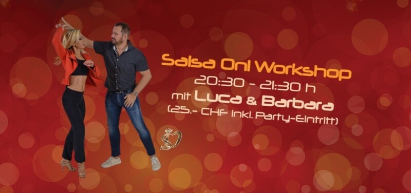 Lerne neue Salsa Figuren mit Luca & Barbara (SalsaLuca) und tanze diese gleich anschliessend an der Fiesta Bachata ab 21:30 Uhr mit 3 Floors (u.a. mit Salsa Floor by DJ Pepe)! Workshop inkl. Party-Eintritt Fiesta Bachata für 25.- CHF Abendkasse oder Vorverkauf via Eventfrog: https://eventfrog.ch/de/p/kurse-seminare/musik-tanz/salsa-workshop-mit-luca-barbara-salsaluca-7312930030333461846.html