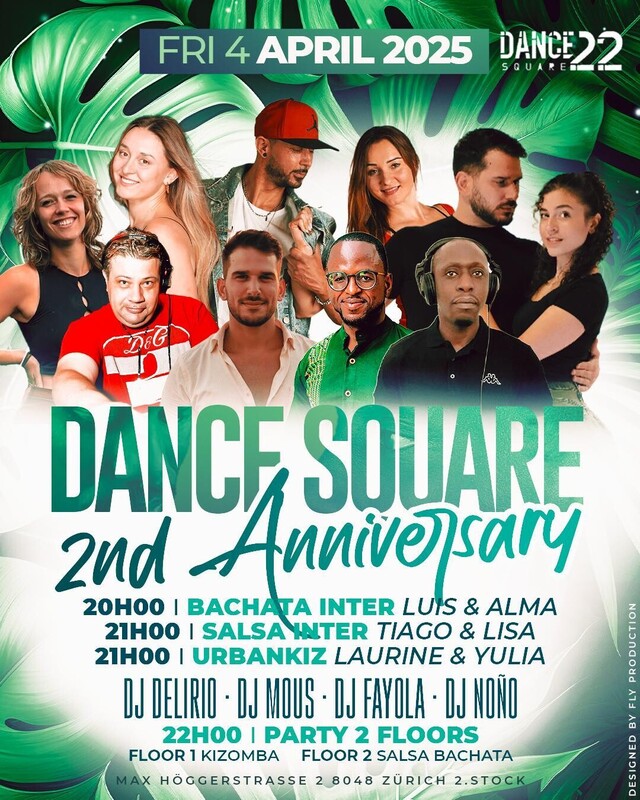 Feiere mit uns das DanceSquare22 Jubiläum und profitiere von Prosecco und Gewinnspielen. Wir haben 2 Dancefloors mit Salsa Bachata und Kizomba. Abendkasse kostet 5.- mehr. Tickets online kaufen. 3 Workshops 20.00 Uhr Bachata 21.00 Uhr Salsa / Kizomba https://my.weezevent.com/dance-square-anniversary?fbclid=IwY2xjawJZqq1leHRuA2FlbQIxMAABHW0BNW5d1mfzGz6xMd-JrFrrunrs8xrSuodGKWXypruefb8FX3u6MNjUjw_aem_9mRoQ1nNTz7efifUaau4zA