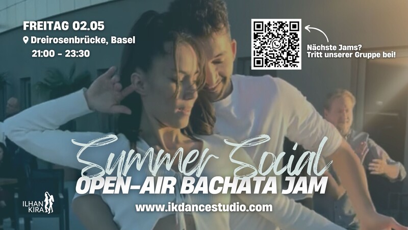 Komm vorbei zum Tanzen unter freiem Himmel – mit guter Musik, sommerlicher Stimmung und Bachata pur! Alle sind willkommen 🩵 • Freitag 02.05 • 21:00 – 23:30 • Dreirosenbrücke, Basel • 100% Bachata Musik 🌐 www.ikdancestudio.com