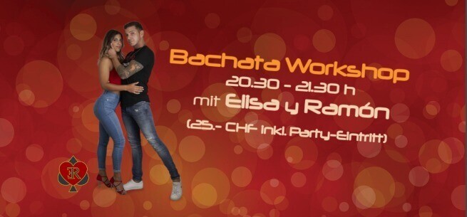 Bachata Workshop mit Elisa y Ramón inkl. Party-Ticket für Fiesta Pasión. Lerne neue Bachata Figuren mit Elisa y Ramón und tanze diese gleich anschliessend an der Fiesta Bachata ab 21:30 Uhr mit DJ Desea! Workshop inkl. Party-Eintritt Fiesta Pasión für 25.- CHF Vorverkauf via Eventfrog: https://eventfrog.ch/de/p/kurse-seminare/musik-tanz/bachata-workshop-mit-elisa-y-ramon-7324745767255592216.html