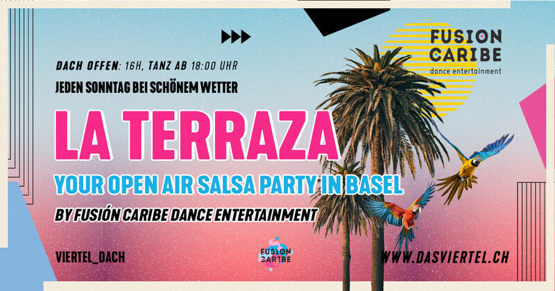 💃 Jeden Sonntag • ab 11. Mai 2025 bis Ende September DJ (Tanz & Musik): 18:00-23:00 Uhr ☀️ Nur bei schönem Wetter! Salsa, Sonne, Sonnenuntergang – willkommen auf der größten wöchentlichen Salsa-Party der Schweiz! „La Terraza“ bringt dir das kubanische Lebensgefühl direkt auf’s Viertel Dach. Organisiert von Fusión Caribe Dance Entertainment, wird hier jeden Sonntag getanzt, gelacht und gefeiert – unter freiem Himmel, mit Blick über Basel und dem schönsten Sonnenuntergang. Was dich erwartet: 🎶 Heisse Salsa-Beats & karibische Rhythmen 🍹 Eisgekühlte Cocktails & Sundowner-Drinks 🍽 Streetfood & Soulfood by Food Hero 🌇 Magische Sonnenuntergänge & Tanz bis in die Nacht Ob Anfänger:in oder Salsa-Pro – alle sind willkommen! Also pack deine Tanzschuhe (oder lass sie zuhause) und komm hoch auf’s Dach – ab dem 11. Mai jeden Sonntag bei schönem Wetter! La vida es mejor bailando! www.fusioncaribe.com
