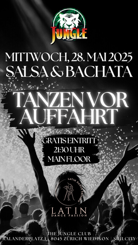 Salsa & Bachata Social Dance❗ 💃Wir tanzen noch vor Auffahrt🕺 📅 Mittwoch, 28. Mai 2025 🕒 21:30 Uhr ⿠ Gratis Eintritt 📍 Kalanderplatz 1, 8045 Zürich Wir freuen uns auf euch💃🕺 www.thejungleclub.ch
