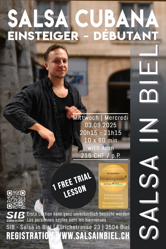 💃 Salsa Cubana Einsteigerkurs – Jetzt tanzt du mit! Tauche ein in die lebendige Welt der kubanischen Lebensfreude – mit unserem Salsa Cubana Einsteigerkurs! Ob allein oder mit Partner*in – bei uns brauchst du keine Vorkenntnisse, nur die Lust, dich zur Musik zu bewegen und etwas Neues auszuprobieren. Was dich erwartet: 🎵 Grundschritte & Rhythmusgefühl 🕺 Einfache Drehungen & erste Figuren 💬 Verständliche Erklärungen & geduldige Anleitung 🤝 Eine freundliche, offene Atmosphäre 😊 Viel Spass, Bewegung & kubanisches Flair! Für wen? Der Kurs ist ideal für komplette Anfänger*innen oder alle, die ihre Grundlagen auffrischen möchten. 👉 Die erste Lektion ist eine unverbindliche Probestunde. Komm vorbei, lern uns kennen und spüre den Rhythmus – ganz ohne Verpflichtung! Mach den ersten Schritt – wir zeigen dir den Rest! Melde dich jetzt an und entdecke, wie viel Freude Salsa machen kann! Anmeldung: https://anmeldung.salsainbiel.ch 🇫🇷 🇫🇷 🇫🇷 💃 Cours débutant de Salsa Cubaine – à toi de danser maintenant ! Plonge dans l’univers vibrant de la joie de vivre cubaine grâce à notre cours de Salsa Cubaine pour débutant·e·s ! Que tu viennes seul·e ou accompagné·e – aucune connaissance préalable n’est nécessaire. Il te suffit d’avoir envie de bouger et de découvrir quelque chose de nouveau ! Ce qui t’attend : 🎵 Pas de base et sens du rythme 🕺 Premiers tours et figures simples 💬 Explications claires et accompagnement bienveillant 🤝 Une ambiance conviviale et ouverte 😊 Du plaisir, du mouvement et une touche de Cuba ! Pour qui ? Ce cours est idéal pour les grands débutants ou celles et ceux qui souhaitent revoir les bases. 👉 Le premier cours est un essai gratuit et sans engagement. Viens nous rencontrer, découvre la Salsa et ressens le rythme – sans aucune obligation ! Fais le premier pas – nous t’accompagnons pour la suite ! Inscris-toi dès maintenant et découvre à quel point la Salsa peut être joyeuse et libératrice ! Inscription : https://inscription.salsabienne.ch