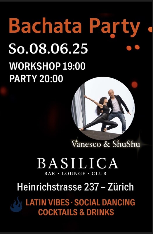 Só.08.06.25 Bachata Workshop 19:00 Workshop & Party CHF 15.- Vanesco & Shushu PARTY 🆎 20:00 DJ Baila CHF 10.- Basílica Heinrichstrasse 237,ZH