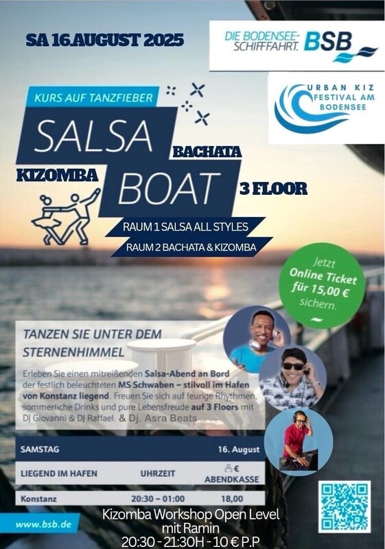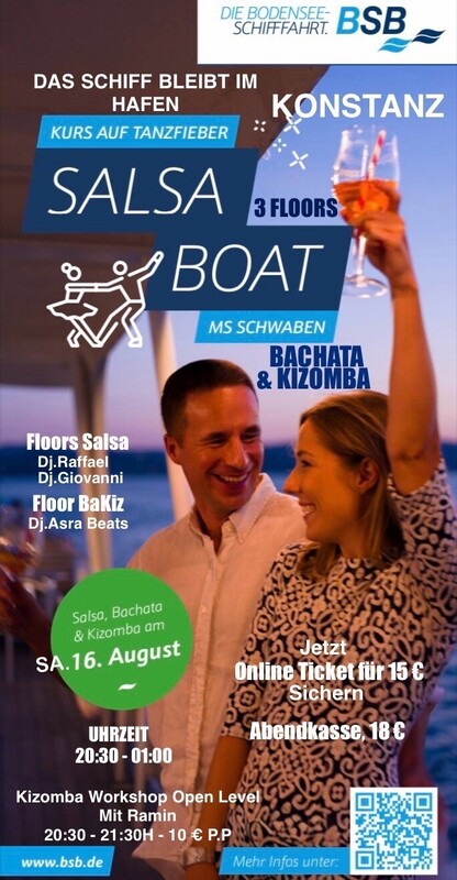 ๐๐ SALSA, BACHATA & KIZOMBA BOAT KONSTANZ ๐๐บ ๐ DAS Event des Sommers steht an! Komm an Bord und tanze mit uns unter dem Sternenhimmel auf dem festlich beleuchteten ๐ข Salsa Boat im Hafen von Konstanz! ๐ Wann? ๐ Samstag, 16. August ๐ 20:00 Uhr โ 01:00 Uhr ๐ง 3 DJs.๐ถ - 3 Floors 2 Floors Salsa All Styles mit DJ. Raffael & DJ. Giovanni 1 Floor Bachata & Kizomba mit DJ. Asra Beats ๐น Coole Drinks ๐ Heiรe Rhythmen ๐ Pure Lebensfreude ๐ Magische Stimmung auf dem Wasser ๐๏ธ Online-Ticket nur 15โฏโฌ (Abendkasse: 18โฏโฌ) ๐ Jetzt sichern auf www.bsb.de โจ Lass den Alltag hinter dir โ und tanze mit uns durch die Nacht! ๐ซ๐๐บ๐ถ๐๐ธ
