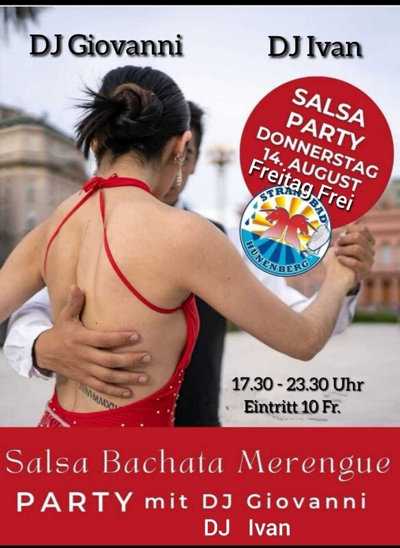 Outdoor Salsa Bachata Party, Do. 14.08, Freitag Frei, Strandbad Hünenberg Dj Giovanni DJ Ivan