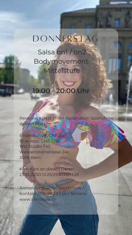 Dieser Kurs richtet sich an alle Salsa-Tänzerinnen und Tänzer mit Vorkenntnissen, die ihre Bodymovement-Technik auf das nächste Level bringen möchten. Im Mittelpunkt steht die Verfeinerung der Bewegungsqualität, das Spiel mit Dynamik und ein noch fliessenderes Tanzgefühl. Zusätzlich wechseln wir zwischen Salsa on1 und Salsa on2 – so hast du einen spannenden Task mehr zum Lernen und erweiterst gleichzeitig deine musikalische Flexibilität. Neben spürbaren Fortschritten garantiere ich jede Menge Spass! Sei dabei und gib deinem Salsa-Style den besonderen Feinschliff! https://simosura.webflow.io/