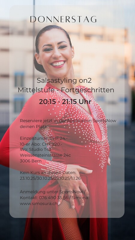 Dieser Kurs ist für alle mittel- bis fortgeschrittenen Salsa-Tänzerinnen und -Tänzer gemacht. Hier üben wir verschiedene Techniken wie Armstyling, Drehtechniken, Bodymovement und mehr. Mit aufregenden Schrittkombinationen und sinnlichen Bewegungen entfache ich das Feuer in jeder Tänzerin und jedem Tänzer. Auch Musicality und schnelles Pick-up werden hin und wieder zur Schau gestellt. Sei dabei und bringe dein Salsa-Styling auf ein neues Level! https://simosura.webflow.io/