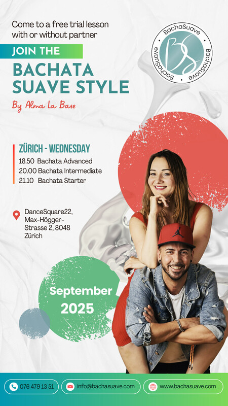 Intermediate (gute Basis-Stufe, verbindet Basiselemente) Dieser Kurs richtet sich an alle, die schon über gute Bachata-Kenntnisse verfügen. Wir kombinieren verschiedene Basiselemente, trainieren Technik und Musikalität und entwickeln einen sinnlicheren Tanzstil. Kein Tanzpartner erforderlich. www.bachasuave.com