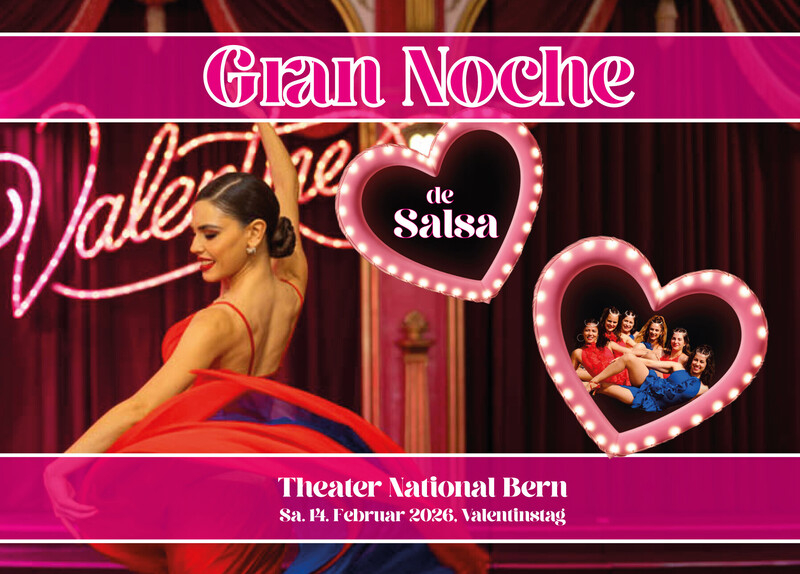 Die Gran Noche de Salsa ist ein Highlight der Berner Salsa Szene. Dieser grosszügige Tanztempel mit dem schönsten Ambiente in Bern öffnet für euch erneut seine Tore. Im Theatersaal des Hotel National direkt beim Berner Hauptbahnhof erwarten dich ein cooler Pre-Party Workshop, eine erstklassige Show und Top-DJ’s! Pre-Party Workshop von 20.30-21.20 Uhr: "Salsa Fusión a lo Cubano" mit Yanieri (CU) Eröffne die grosse Salsa Nacht mit einem Salsa Tanz-Workshop. Learn new Moves and have Fun! Es sind keine Voranmeldung und TanzpartnerIn erforderlich. Türöffnung für den Workshop ist um 20.15 Uhr. Top-DJ‘s: DJ Saltho & DJ Qu’Eríco Top-Show: by "Cubanieris", spezielle Valentinstag Show Preise & Zeiten: CHF 22.- Partyeintritt inkl. Preparty-Workshop (20.30-21.20 Uhr) CHF 15.- nur Partyeintritt, Türöffnung ab 21.30 Uhr Kein Vorverkauf, nur Abendkasse! Zahlung per Twint nur gegen 1 Fr. Aufpreis möglich