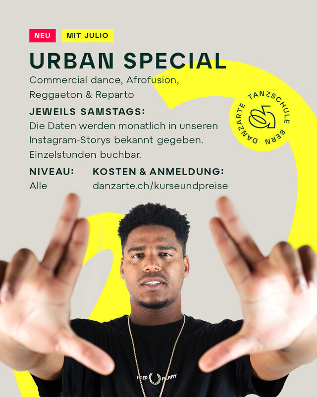 In diesem Kurs wechseln sich Commercial Dance, Afrofusion, Reggaeton und Reparto ab. Von solider Basic über Flow bis hin zu Moves, Schrittabfolgen und einer Combo – dieser Kurs bietet alles! https://danzarte.ch/urban-mambo-special/