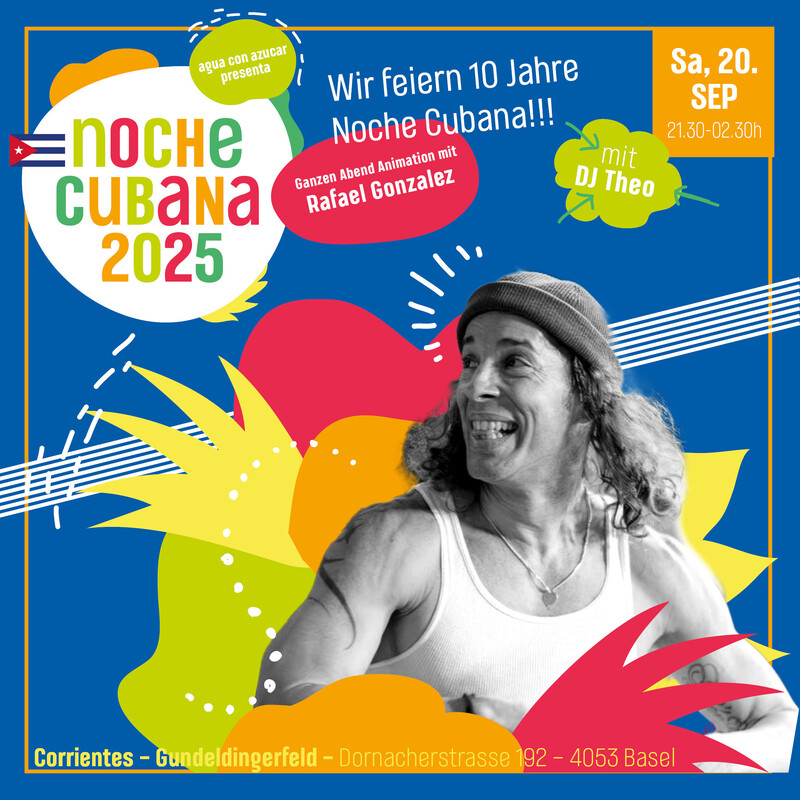 Wir feiern 10 Jahre Noche Cubana!! Zum Dank an unsere treuen Gäste offerieren wir den Eintritt für CHF 10. Lasst uns gemeinsam feiern und uns von der Super-Salsa von Dj Theo und der Animation von Rafael Gonzalez mitreissen. https://www.facebook.com/events/1475866650485832