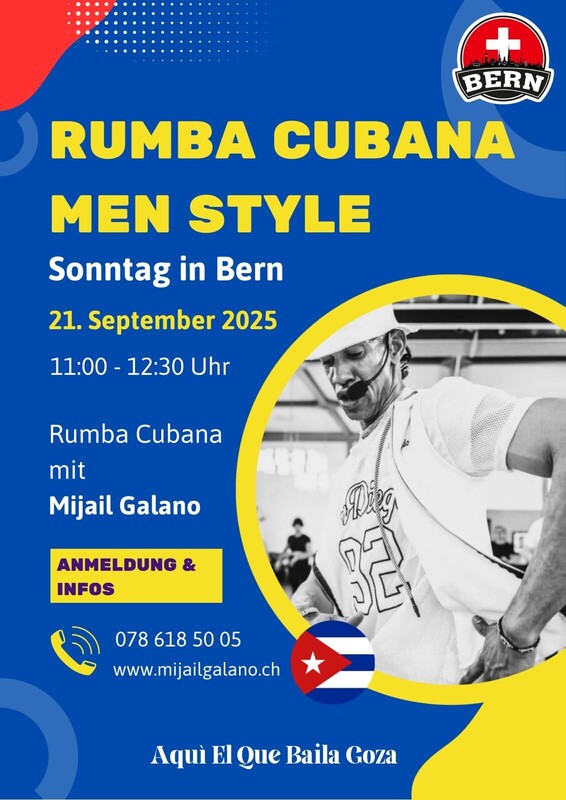 A Rumbear Rumberos Rumba Cubana in Bern mit Mijail Galano 11:00 - 12:30 Rumba Cubana Men Style Info ✍️ Anmeldung 078 618 50 05 Aquí El Que Baila Goza www.mijailgalano.ch
