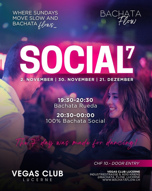 Der perfekte Abschluss deiner Woche! Erlebe Bachata-Vibes in entspannter Atmosphäre mit einer mitreissenden Rueda zum Start und einem Social bis Mitternacht. 🗓 2. Nov | 30. Nov | 21. Dez 2025 📍 Vegas Club Lucerne 🕢 19:30–20:30 Bachata Rueda 🕣 20:30–00:00 Social 🎫 Eintritt vor Ort: 10 Fr. Let the 7th day be your Bachata day! 🎶 https://www.instagram.com/bachata_flow_lucerne/