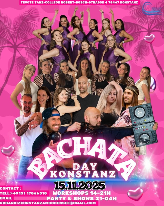 🎉 Bachata Day Konstanz 🎉 📅 Datum: Samstag, 15. November 2025 🕒 Workshops: 14:00 – 21:00 Uhr 🎊 Party: 21:00 – 04:00 Uhr (Sonntagmorgen) 📍 Ort: TeVoTe Tanz-College Konstanz, Robert-Bosch-Straße 4, 78467 Konstanz ✨ Was euch erwartet Ein ganzer Tag voller Tanz, Leidenschaft und Community! Ob Einsteigerin oder fortgeschrittene Tänzerinnen – beim Bachata Day lernt ihr wertvolle Techniken, entwickelt eure Musikalität und erweitert euer Repertoire nachhaltig. 📚 Workshops ✅ Bachata Musicality – mit Alyona (zertifizierte Bachata-Trainerin) 🇩🇪 ✅ Bachata Sensual Partnerwork – mit Daniel & Alyona (zertifizierte Bachata-Sensual-Trainer) 🇨🇭🇩🇪 ✅ Bachata Sensual Partnerwork – mit Emu & Sabrina 🇩🇪 ✅ Bachata Partnerwork – mit Sebi & Anna 🇩🇪 ✅ Bachata Ladystyle – mit Alyona 🇩🇪 👉 Bringt eure Leidenschaft aufs nächste Level – mit dem perfekten Mix aus Technik, Musikalität und karibischem Feeling! 🎭 Artists & DJs 🔥 Artists Daniel & Alyona 🇨🇭🇩🇪 Emu & Sabrina 🇩🇪 Sebi & Anna 🇩🇪 Alyona 🇩🇪 🎧 DJ Line-up DJ Dani (🇨🇭 Schweiz) DJ Emu (🇩🇪 Ulm) 🎶 Musikmix: 100 % Bachata – alle Styles! ✨ Special Guest Shows Son Latino Ladies (Karlsruhe) TeVoTe Tanz-College Showgruppe ⏰ Showtime um 00:00 Uhr 👉 Auftritt der Showgruppen 👉 Animation & Party bis in die Nacht! 💸 Preise & Anmeldung 🎟 Fullpass (Workshops + Party + Show) Early Bird bis 19.10.: 55 € (all inclusive) Regulär: ab 19. Oktober höher ⚠️ Begrenzte Plätze: nur 20 Fullpasses (10 Leader & 10 Follower) – Qualität statt Quantität! 🎟 Party-Ticket VVK: 10 € Abendkasse: 12 € 📌 Bitte rechtzeitig anmelden – für eine ausgewogene Leader-/Follower-Balance. 📲 Anmeldung & Kontakt 📧 E-Mail: urbankizzkonstanzambodensee@gmail.com 📱 WhatsApp/Telefon: +49 151 17866318 📌 Facebook: Urban Kiz Konstanz am Bodensee 🎟 Ticket-Link: 👇👇👇👇👇👇👇 https://www.facebook.com/share/1BDCfbjXpy/ ❤️‍🔥 Community Spirit Einmal im Monat verwandelt sich Konstanz in den Hotspot für Bachata! Freut euch auf: ✨ intensive Workshops ✨ eine stimmungsvolle Party ✨ inspirierende Tänzer*innen ✨ eine herzliche, offene Community 👉 Sei dabei, tanze, lache und erlebe einen unvergesslichen Bachata Day mit uns! 💃🕺 https://www.facebook.com/share/1BTXQW2VeM/