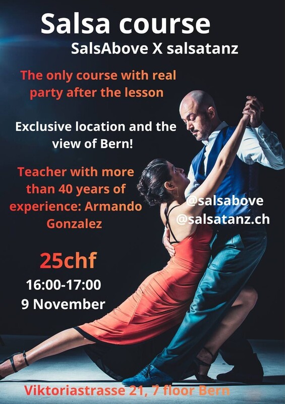 SalsAbove offer, in collaboration with Armando Gonzales, salsa teacher with more than 40 years of experience, a salsa lesson in a special location. For 25chf you can have a salsa lesson tailored on your level and you'll be able to put into practice what you learned immediately after at the #SalsAbove party! You can also have fun in a suggestive location, meet new people, trying special drinks and enjoying the view of Bern from the rooftop. See you at the lesson of the 9 November from 16:00 till 17:00 ViktoriaStrasse 21, 7 floor.