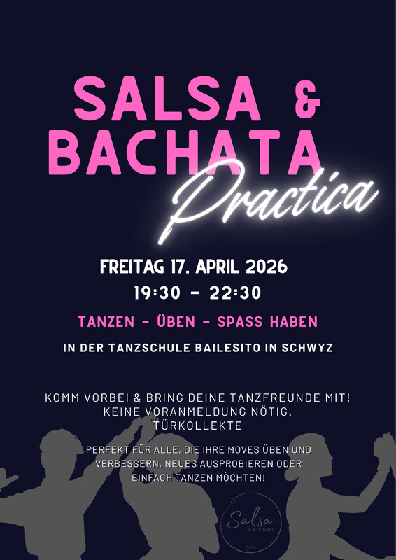 Am Kulturwochenende öffnen wir unsere Türen für eine offene Practica: gemeinsam tanzen, Neues ausprobieren und die Freude an der Musik teilen. Alle sind herzlich willkommen, uns kennenzulernen und Teil unserer Community zu werden. Wir von Salsafriends stehen für eine Tanzschule, in der Bewegung, Musik und Gemeinschaft im Mittelpunkt stehen. An unserer offenen Practica tanzen wir zusammen, üben Figuren, tauschen uns aus und geniessen die Energie von Salsa und Bachata – ganz ohne Druck, dafür mit viel Freude. Ob mit Erfahrung oder ganz neu im Tanz: Alle sind herzlich eingeladen, vorbeizuschauen, uns kennenzulernen und die Salsafriends‑Atmosphäre zu erleben. Bei uns geht es darum, gemeinsam zu tanzen, Spass zu haben und neue Leute kennenzulernen. An der Practica kannst du Salsa und Bachata ausprobieren, üben oder einfach die Musik geniessen. Komm vorbei, lerne uns kennen und werde Teil unserer Community. https://www.kulturwochenende.ch/programm/freitag/salsa-und-bachata-practica-von-salsafriends-schwyz_ASJTJYP? salsafriends.ch