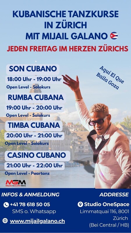 Freitags in Zürich Kubanische Tanzkurse mit Mijail Galano Son - Rumba - Timba - Casino Info & Anmeldung 078 618 50 05 Aquí El Que Baila Goza www.mijailgalano.ch