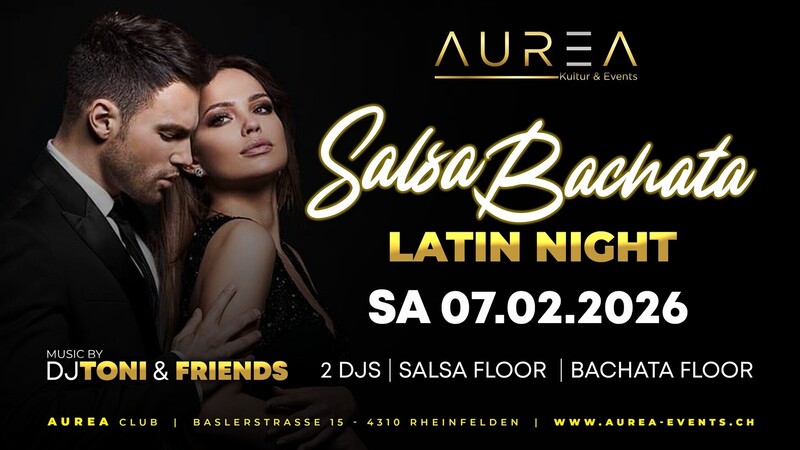 7. Feb - 18. Salsa & Bachata 𝗟𝗮𝘁𝗶𝗻 𝗡𝗶𝗴𝗵𝘁 im AUREA in Rheinfelden - Mit einem Bachata Floor mit Djane Miha und einem Salsa Floor mit DJ Toni (~70% Puerto). Im Vorfeld Bachata Workshop mit der Tanzschule Bachata Basel Die Platzzahl beim Workshop ist limitiert - Unbedingt Vorverkauf nutzen Der Hauptevent startet um 21.00 Uhr - Türöffnung ist um 20.30 Uhr Abendkasse vorhanden - Vorverkauf empfohlen.