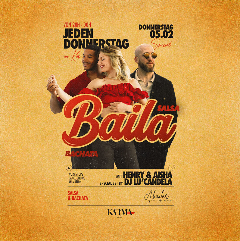Hola Mi Gente! 💃JEDEN DONNERSTAG💃 BAILA Salsa & Bachata 20 00 H - 00 00 H VAMOS A BAILAR💃🕺🎶 Friendslist: ⬇️NUR CHF 5.- Eintritt!⬇️ https://www.fourvenues.com/karma-club/NWW2 @Karma Club Aarbergergasse 61, 3011 https://www.fourvenues.com/karma-club/NWW2