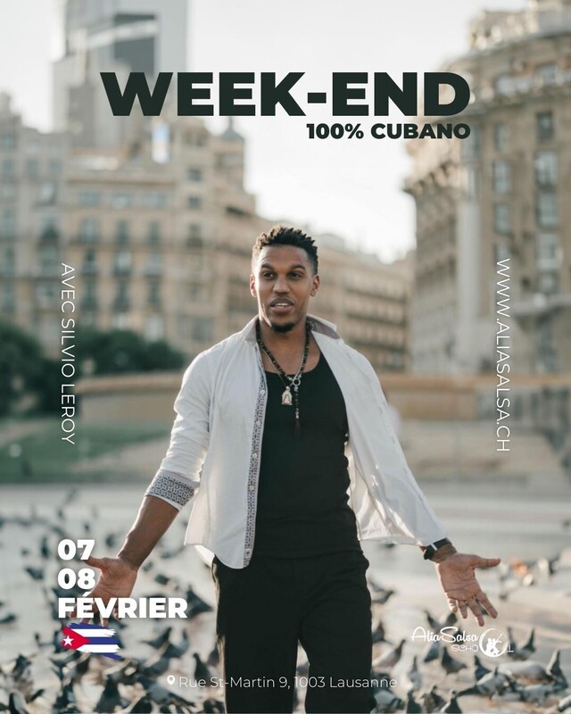 Week-end 100 % Cubano 🇨🇺 Les 7 et 8 février, laissez-vous porter par l’esprit de Cuba lors d’un week-end entièrement dédié aux danses cubaines. Pendant deux jours, @silvio_leroy vous guide à travers un voyage rythmé et authentique entre Son, Timba, Afro et Rumba, dans une atmosphère portée par le rythme et le mouvement. 🗓️PROGRAMME Samedi 7 février • Son Cubano (Débutant) de 13:00 à 14:00 → 25.- • Son Cubano (Intermédiaire) de 14:00 à 16:00 → 47.- • Timba Couple (Intermédiaire) de 16:30 à 18:00 → 37.- Dimanche 8 février • Afro Cubain Chachalokafu (Tous niveaux) de 11:00 à 12:30 → 37.- • Rumba Columbia (Tous niveaux) de 13:00 à 14:30 → 37.- 🎟️ FORMULES • Pass week-end : 150.- • Pass samedi : 95.- • Pass dimanche : 65.- Un rendez-vous idéal pour explorer les racines des danses cubaines, affiner sa pratique ou simplement vivre un moment fort de partage et de mouvement ✨ ▶️ Inscriptions : www.aliasalsa.ch www.aliasalsa.ch www.aliasalsa.ch