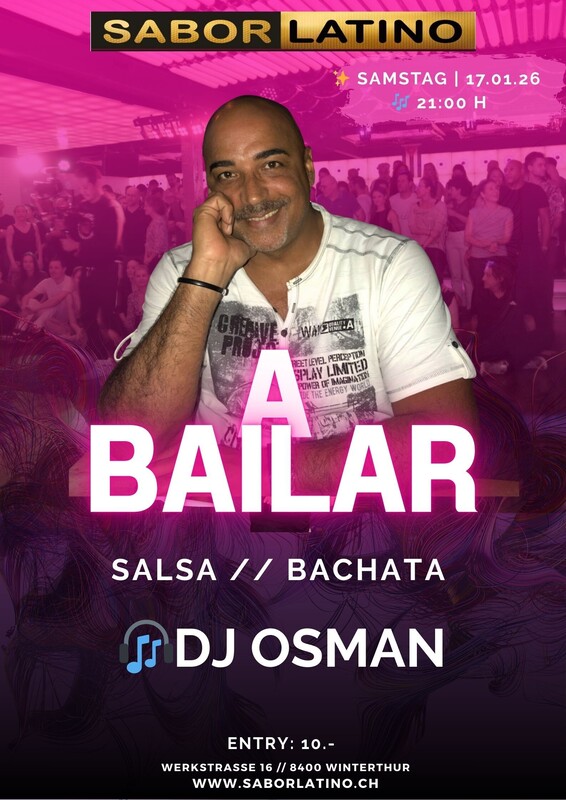 Salsa, Bachata & Kizomba im Sabor Latino Zeit zu tanzen – A BAILAR! 💃🕺 Am Samstag wird das Sabor Latino zum Treffpunkt für alle, die Salsa, Bachata und Kizomba lieben. DJ Osman bringt die perfekte Mischung aus Rhythmus, Gefühl und Energie auf die Tanzfläche und sorgt für eine unvergessliche Partynacht. Ob leidenschaftliche Salsa, gefühlvolle Bachata oder fliessende Kizomba – hier kommt jede:r Tänzer:in auf seine Kosten. Freu dich auf: ✨ grosszügige Tanzfläche ✨ starke Musik & gute Vibes ✨ eine offene, tanzbegeisterte Community ✨ Bar, Garderobe & alles, was man für einen gelungenen Abend braucht Komm vorbei, lass den Alltag hinter dir und tanz mit uns bis spät in die Nacht – A BAILAR! https://saborlatino.ch/events/a-bailar-2/