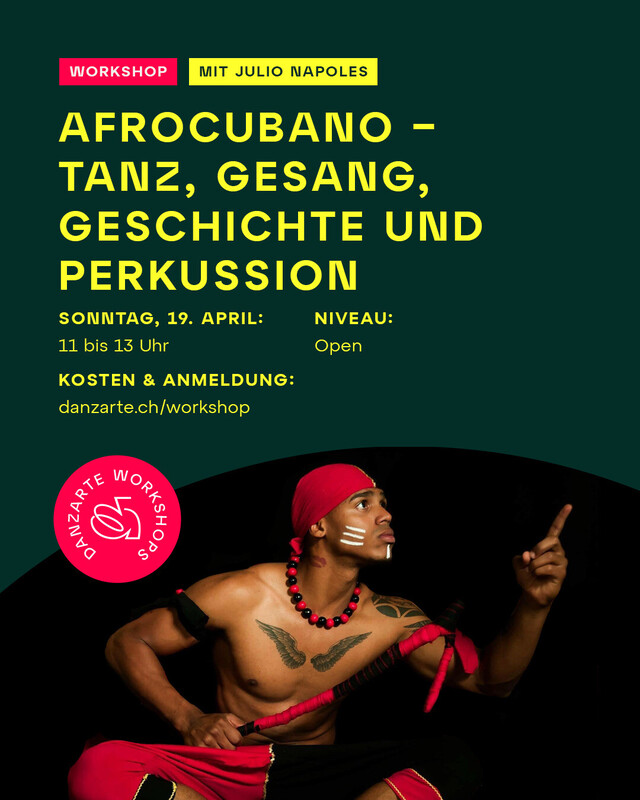 Tauche ein in die lebendige Welt der afrokubanischen Kultur! Dieser Workshop verbindet Tanz, Rhythmus, Gesang und Geschichte zu einem ganzheitlichen Erlebnis. Afrokubanische Tanzformen sind eng mit Musik und kultureller Überlieferung verbunden. Im Workshop arbeiten wir mit einer konkreten afrokubanischen Tanzform, ihrem Rhythmus und ihrem Ausdruck. Gesang und Perkussion bilden dabei die Grundlage und ermöglichen ein unmittelbares körperliches und musikalisches Erleben. Ergänzend geben wir Einblicke in den kulturellen und historischen Kontext, aus dem diese Traditionen entstanden sind. Der Workshop richtet sich an Tänzer:innen aller Levels. Zeit: 11.00–13.00 Uhr https://danzarte.ch/salsa-workshops-in-bern/