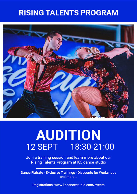Rising Talents Programm im KC Dance Studio Wir laden dich herzlich zu unserer Audition ein, um eine Rising Talents Trainingseinheit zu erleben und die spannenden Möglichkeiten kennenzulernen, die dieses Programm für leidenschaftliche Tänzer bietet, die ihr volles Potenzial entfalten möchten. Das Rising Talents Programm im KCDS umfasst eine Vielzahl von Kursen und exklusiven Trainings, die dir dabei helfen, dich als Tänzer weiterzuentwickeln. Es bietet zudem eine einzigartige Gelegenheit, herauszufinden, ob du in Zukunft auch als Tanzlehrer aktiv werden möchtest. Dieser Weg ist eine Reise der persönlichen Weiterentwicklung, Selbstentdeckung und des Ausbau deiner künstlerischen Fähigkeiten. Wir freuen uns darauf, dich willkommen zu heißen und dich auf deinem Tanzweg zu begleiten! Rising Talents Program at KC Dance Studio We invite you to join our audition to experience a Rising Talents training session and discover the exciting opportunities this program offers to passionate dancers eager to unlock their full potential. The Rising Talents Program at KCDS provides a variety of classes and exclusive training sessions designed to help you develop as a dancer. It also offers a unique chance to explore whether you'd like to pursue teaching dance lessons in the future. This journey is all about personal growth, self-discovery, and expanding your skills as an artist. We look forward to welcoming you and supporting your dance journey! www.kcdancestudio.com/events
