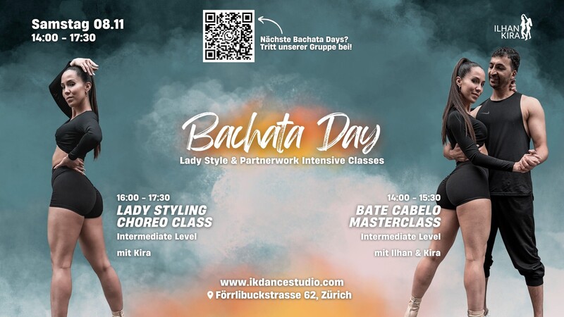 Our Monthly BACHATA DAY in Zurich - Intensive Partnerwork & Lady Styling Classes 🔥 🗓️ 08.11 🔥 14:00 – 15:30 Bachata Partnerwork - Bate Cabelo Masterclass with Ilhan & Kira (Intermediate Level) 🔥 16:00 – 17:30 Bachata Lady Styling - Choreography Class with Kira (Intermediate Level) Save the dates! Next sessions: - 13.12 🌐 Tickets: https://www.ikdancestudio.com/event-details/bachata-day-ilhan-kira-4 📍 Club Silbando, Förrlibuckstrasse 62, Zürich