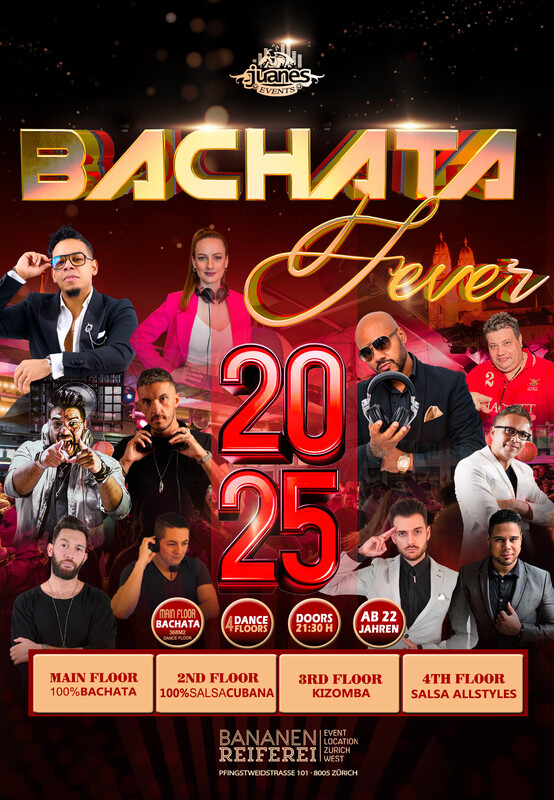 🔥 BACHATA FEVER 🔥 Welcome 2025 Bananenreiferei by Juanes ●●● Dieses Jahr, im 2025 feiern wir 7 Jahre 🔥 BACHATA FEVER 🔥 Unsere Vision stammt aus dem Jahr 2018, als wir im Rahmen unserer verschiedenen Salsa-Partys eine Tanzfläche eröffneten, die dem Bachata gewidmet war, wohl wissend, dass dies in Zukunft einer der beliebtesten Tänze in der Salsa- und Latin-Szene von heute in Zürich und Umgebung sein würde. 🔥 BACHATA FEVER 🔥 hat sein eigenes Konzept etabliert, für seine Originalität und Präsentation, eine gold-rote Dekoration macht die Party zum Bachata-Zentrum der Schweiz, begleitet von unseren nationalen und internationalen Top-DJs, Shows und Entertainern, die mit viel Gefühl und viel Bachata die sinnlichsten Rhythmen entfachen. Willkommen zum BACHATA FEVER 2025 ●●● 🔥 4 DANCE FLOORS 🔥 AB 22 JAHREN 🔥 DOORS: 21:30 – 04:00 UHR 🔥 EINTRITT CHF 20.- 🔥 EINTRITT: BEZAHLUNG AN DER KASSE NUR BARGELD 🔥 GRATIS GARDEROBE 🔥 400 AUTO PARKPLÄTZE ●●● 20:30 Uhr WORKSHOP BY .... 🔥 Sie brauchen nicht zu buchen, kommen Sie direkt zum Bananenreiferei am Samstag, …………. um 20:15 Uhr. Der Workshop Preis ist CHF 25.- Inkl. Garderobe & Party auf 4 Dance Floors. ●●● SHOW 00:00 Uhr ●●● 🔥 MAIN FLOOR: 100% BACHATA FEVER (371 m2 Dance Floor) 🔥 GUEST DJ HUSKY (Barcelona) 🔥 DJ DESEA Bachata Fusion, Sensual, Moderna, Clasica, Del Recuerdo ●●● 🔥 2ND FLOOR: 100% SALSA CUBANA: DJ 100% Salsa Cubana, Timba, Rumba,Fiesta. ●●● 🔥 3RD FLOOR: KIZOMBA FEVER: DJ Kizomba, Semba, Tarraxinha, Afrohouse, Urban Kiz ●●● 🔥 4TH FLOOR: SALSA ALLSTYLES DJ Salsa Allstyles, Clasica, Puertorriqueña, Romantica ●●● BANANENREIFEREI Pfingstweidstrasse 101 8005 Zürich ●●● SEARCH MAP https://search.ch/.../Bananenreiferei,Z%C3%BCrich... 🔥🔥🔥 DATES BACHATA FEVER 2025 BANANENREIFEREI Sa 15. Februar 2025 Sa 15. März 2025 SA 19. April 2025 Sa 17. Mai 2025 Sa 21. Juni 2025 sa 12. Juli 2025 Sa 16. August 2025 Sa 18. Oktober 2025 Sa 15. November 2025 Sa 20. Dezember 2025 ●●● FOLLOW US in INSTAGRAM https://www.instagram.com/bachata_fever_juanes/ ●●● OFFICIAL JUANES EVENTS FACEBOOK https://www.facebook.com/juanesevents ●●● Bienvenidos Juanes Events http://juanesevents.ch/