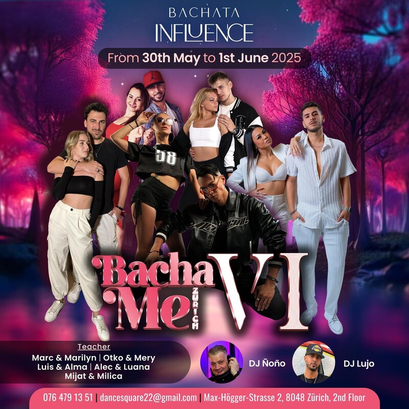 Bachata Influence Weekend The First Edition in Switzerland! Date: 30th May - 1st June 2025 Location: Switzerland Get ready to experience Bachata Influence—a dynamic, fast, and musical style that will take your dancing to a whole new level! With its unique energy and innovative techniques, Bachata Influence is designed to elevate your connection to the music and bring out your best on the dance floor. What to Expect: ✅ Exclusive workshops led by certified artists of Melvin & Gatica ✅ Focus on the art of dynamic, fast-paced Bachata Influence ✅ Socials and performances that will inspire your dance journey ✨ Don’t miss this historic opportunity to learn from the best at the first-ever certified Bachata Influence event in Switzerland! Mark your calendar—let’s take your dancing to the next level! https://my.weezevent.com/bachame-6?_gl=1*bjda10*_gcl_au*NzcxMDAxNDEuMTczNjgxMDcyMi40MDk2NzMzMTEuMTczODA4NDkwMi4xNzM4MDg0OTA0*_ga*MjE0MTIzNzQ1My4xNzMxODc5OTYy*_ga_39H9VBFX7G*MTczODEwMTI0OC42LjEuMTczODEwMzUwMy41MC4wLjA