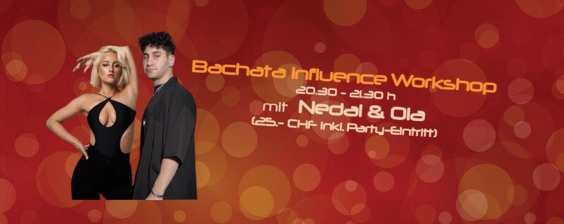 Bachata Influence Workshop mit Nedal & Ola inkl. Party-Ticket für Fiesta Pasión Lerne neue Bachata Influence Moves mit Nedal & Ola und tanze diese gleich anschliessend an der Fiesta Pasión ab 21:30 Uhr mit drei Floors u.a. Bachata-Floor mit DJ Lujo! Workshop inkl. Party-Eintritt für 25.- CHF Abendkasse oder Vorverkauf via Eventfrog: https://eventfrog.ch/de/p/kurse-seminare/musik-tanz/bachata-influence-workshop-mit-nedal-ola-7451215456713581107.html https://eventfrog.ch/de/p/kurse-seminare/musik-tanz/bachata-influence-workshop-mit-nedal-ola-7451215456713581107.html