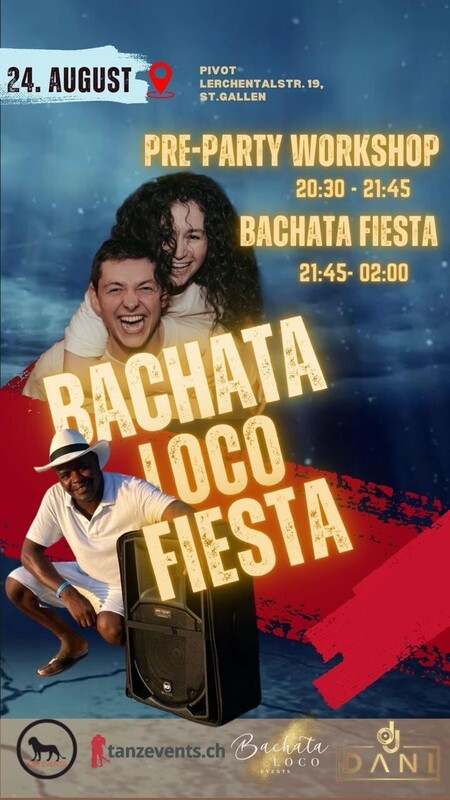 🌟🌟🌟 Aufregender Bachata-Party-Event in St. Gallen! 🌟🌟🌟 Bereitet euch vor auf eine unvergessliche Tanznacht bei der Bachata Loco Fiesta am Samstag, dem 24. August, im Pivot, St. Gallen, vor! Dieser Event ist ein Muss für alle Bachata-Begeisterten und Tänzer, die sich in die lebhaften Rhythmen des Tanzes vertiefen möchten. 🔥🔥🔥 Exklusive Bachata-Workshops & Top-DJs! 🔥🔥🔥 Nehmt an unserem Bachata-Workshop für jedes Level teil mit Marc & Özlem um 20:30, perfekt für Tänzer und Tänzerinnen, die noch nicht lange tanzen. Mit DJ Hero garantieren unsere Lineups eine Nacht voller neuester und grossartiger Bachata-Hits. Tanzt die Nacht durch und erlebt die Leidenschaft der Bachata-Musik. Die Party beginnt um 21:30 und geht bis 02:00, ein ganzer Abend im Zeichen der besten Bachata-Klänge. 📢 Helfen mit, die Bachata Loco Fiestas zu einem grossen Erfolg zu machen, indem Ihr die den Event verbreitet. Der Vorverkauf hat begonnen, sichert euch jetzt die Tickets mit dem Rabatt! Veranstaltungshighlights: 20:30: Open Level Workshop mit Marc & Özlem 🤩 21:30 - 02:30: Bachata Loco Fiesta mit DJ Hero 🤩🤪 Tickets im Vorverkauf: 20CHF (25 CHF an der Tür): Workshops plus Party Eintritt zur Bachata Loco Fiesta 10CHF (15 CHF an der Tür): Nur Eintritt zur Bachata Loco Fiesta Sichert euch euren Platz im Herzen der Bachata-Szene von St. Gallen. Kommt zu uns für eine Nacht, in der die Rhythmen der Musik uns vereinen. Sichert euch noch heute die Tickets und seit Teil dieser lebendigen Feier! https://ce-events.ch