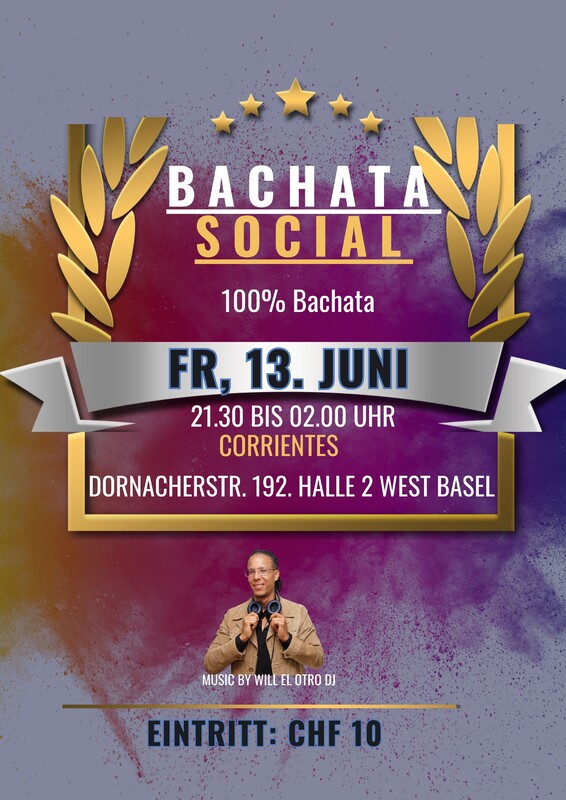 ★★★BACHATA SOCIAL★★★ 💥💥💥💥💥💥💥💥💥💥💥 -Bist du bereit für die grösste Bachata Party in Basel? -Ja?! GRANDIOS!!! Weil wir an Bachata Social Party NUR Bachata spielen und tanzen. 💃💃💃💃💃💃💃💃💃💃💃💃💃💃💃💃💃💃💃💃 Komm, geniesse und feiere mit uns mit den besten Bachata-Beats. 💥💥💥💥💥💥💥💥💥💥💥💥💥💥💥💥💥💥💥💥 Lerne andere Bachater@s kennen und, warum nicht? AUCH NEUE BACHATA SONGS!!! ★★★PREISE★★★ EINTRITT: CHF 10 Ort: CORRIENTES, DORNACHERSTRASSE 192, BASEL Weniger anzeigen https://www.instagram.com/el_otro_dj/