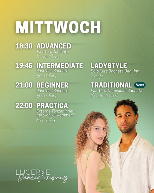 Wir zeigen dir Schritt für Schritt, wie du dich authentisch, rhythmisch und mit Leichtigkeit zur klassischen Bachata-Musik bewegst – ganz ohne Druck, dafür mit ganz viel Spaß. Gemeinsam lernst du die wichtigsten Grundelemente, typische Figuren und Techniken, die dir ein solides Fundament geben – in einer entspannten, energiegeladenen Atmosphäre, in der sich alle gegenseitig motivieren. Triff neue Leute, knüpfe Kontakte und tauche ein in die ursprüngliche Welt der Bachata. Ob im Club, auf Socials oder einfach für dich selbst – jetzt ist der perfekte Moment, dein Bachata-Traditional-Abenteuer zu starten! https://www.instagram.com/bachata_flow_lucerne/
