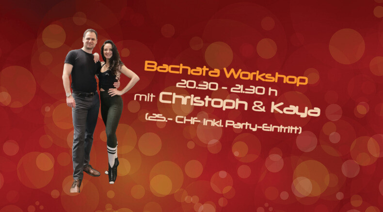 Bachata Workshop mit Christoph & Kaya inkl. Party-Ticket für Fiesta Pasión. Lerne neue Bachata Flow Figuren mit Christoph & Kaya und tanze diese gleich anschliessend ab 21.30 Uhr an der Fiesta Bachata mit drei Floors u.a. Bachata Floor mit DJ Ñoño! Workshop inkl. Party-Eintritt Fiesta Pasión für 25.- CHF Vorverkauf via Eventfrog: https://eventfrog.ch/de/p/kurse-seminare/musik-tanz/bachata-workshop-mit-christoph-und-kaja-7327816006520279495.html