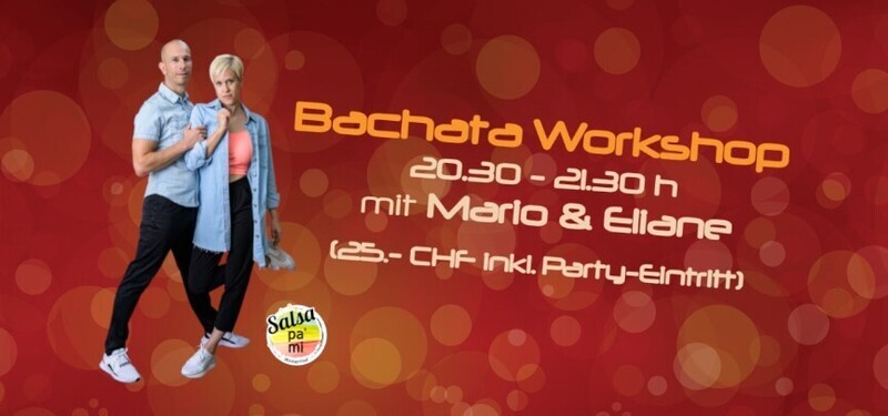 Bachata Workshop mit Mario & Eliane (Salsapa'mi - Winterthur) inkl. Party-Ticket für Fiesta Pasión Lerne neue Bachata Figuren mit Mario & Eliane (Salsapa'mi) und tanze diese gleich anschliessend an der Fiesta Bachata ab 21:30 Uhr im Bachata-Floor mit DJ Dani! Workshop inkl. Party-Eintritt für 25.- CHF Abendkasse oder Vorverkauf via Eventfrog: https://eventfrog.ch/de/p/kurse-seminare/musik-tanz/bachata-workshop-mit-mario-eliane-salsapa-mi-7167923741288031603.html