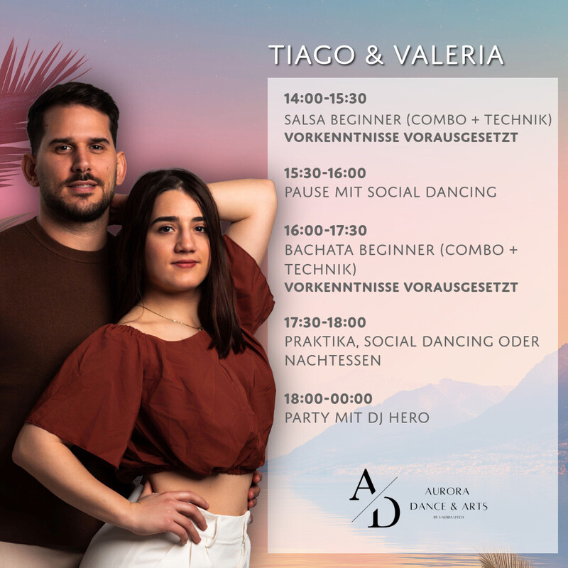 Was dich erwartet: Wir feiern das Sommerfinale mit zwei kompakten Beginner-Workshops am Nachmittag und einer langen Social Dance Night mit DJ Hero. Programm 14:00–15:30 Salsa Beginner (du kennst schon ein paar Figuren und kannst Tanzen, wir erlernen eine Combo + Technik, limitierte Plätze!) 15:30–16:00 Pause & Social Dancing 16:00–17:30 Bachata Beginner (du kennst schon ein paar Figuren und kannst Tanzen, wir erlernen eine Combo + Technik, limitierte Plätze!) 17:30–18:00 Praktika, Social Dancing, oder Dinner im Restaurant 18:00–00:00 Party mit DJ Hero – Salsa & Bachata all night Darauf kannst du dich freuen: - Kompakte Beginner-Workshops mit klaren Combos & sauberer Technik - Lange Social-Night mit einem ausgewogenen Mix aus Salsa & Bachata - Basic Crashkurs in Bachata (je nach Wunsch) ‼️ Sichere dir jetzt deinen Platz und tanze mit uns in die Nacht‼️ 🎟️ EarlyBird Tickets bis 8.9 erhältlich! 🎟️ unter: https://eventfrog.ch/bailaviva13 Mehr Infos: www.bailaviva.ch https://eventfrog.ch/bailaviva13