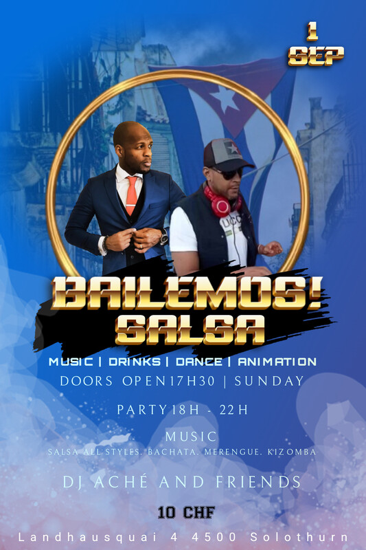 XXL KULTUR Landhaus Solothurn 1 de septiembre de 2024 18:00 BAILEMOS SALSA Estuviste en este evento? Agrega tus fotos! Domingo cubano en Solothurn Disfruta de un domingo con la buena música cubana y más, junto a un buen clima de buena energia entre amigos, en el LANDHAUS SOLOTHURN Hora: 18H - 22H DJ Aché y amigos Entrada / 10chf Precio de entrada: CHF 10.00 Share on Facebook Eventos