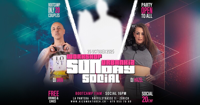 🆕 Edition 2025 is here 🆕 Your beloved Sunday social keeps going with amazing artists. 🆆🅷🅰🆃 🆃🅾 🅴🆇🅿🅴🅲🆃: ✅ 4h Urbankiz Bootcamp with ........ ✅ Social Party with FREE DRINKS & DELICIOUS CAKES ( All you can eat ;) ) 🎧 2 Dj's in Console to cover all the styles you love. 🅿️ FREE PARKING 🧥 FREE CLOAKROOM ( NOT surveilled 🕵🏾‍♀️) 🅿🆁🅾🅶🆁🅰🅼 10:30 Door opening 11:00 - 13:00 1st Part Bootcamp 13:00 - 14:00 Lunch Break 14:00 - 16:00 2nd Part Bootcamp 16:00 - 21:00 SOCIAL PARTY 🆆🅷🅴🆁🅴 La Pantera - Räffelstrasse 11 - Zurich 🆃🅸🅲🅺🅴🆃🆂 https://www.kizombatouch.ch/event-details/sunday-social-bootcamp-urbankiz-with-stay-tuned-6