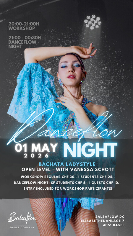 Kommt zu unserer Danceflow Night, in welcher ihr in lockerer Atmosphäre Freunde treffen und miteinander tanzen und üben könnt. Ob Salsa, Bachata oder eine Rueda Cubana, es ist für jeden etwas dabei! Lass Dich von DJ Rafa Rivas auf dem Salsa Floor überraschen. Für den Bachata Floor haben wir eine Playlist, erstellt von unseren Bachateras, welche jede Woche überarbeitet wird. Ihr dürft auch gerne vor Ort eure wünsche anbringen! :) Danceflow Night Eintritt: Salsaflow Schüler CHF 5.- Gäste CHF 10.- Diesen Freitag findet ein Bachata Ladystyle Workshop mit Vanessa Schott statt. Workshop: 20:00-21:00h Party: 21:00 - 00:30h https://www.salsaflow-dc.com/kurse/workshops/