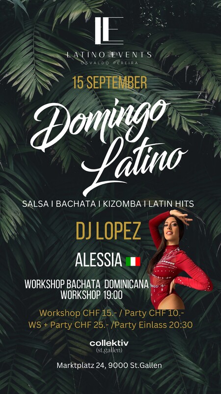 ‼️‼️Domingo Latino‼️‼️ Workshop Bachata Dominicana By: Alessia 🇮🇹 Music by: Dj Lopez #SALSEROSSILLAMANYOVENGO🎵🎶 #ESOOOO💃🏼🕺 Jeden Sonntag findet jetzt neue in Collektiv am Marktplatz 24 St. Gallen der Tanz-Event DOMINGO LATINO statt. Wie immer erwarten euch Osvaldo und seine resident DJs. Kommt vorbei und tanzt in einem tollen Ambiente zu sensationellen Musik. 💃🏽🕺🏻 #ABAILAR #bachata #latinamericandance #salsacubana #salsabachata #kizombaaddict #latino #salsadancing #socialdance #DomingoLatino #fiestalatina # #sundayfunday