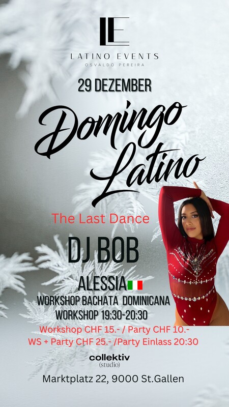 ‼️‼️Domingo Latino‼️‼️ Special THE LAST DANCE oF THE YEAR💃🏻🕺🏻🎊🎉 Workshop Bachata Dominicana mit Alessia💃🏻🔥 #SALSEROSSILLAMANYOVENGO🎵🎶 #ESOOOO💃🏼🕺 Jeden Sonntag findet jetzt neue in Colletivee am Marktplatz 24 St. Gallen der Tanz-Event DOMINGO LATINO statt. Wie immer erwarten euch Osvaldo und seine resident DJs. Kommt vorbei und tanzt in einem tollen Ambiente zu sensationellen Musik. 💃🏽🕺🏻 #ABAILAR #bachata #latinamericandance #salsacubana #salsabachata #kizombaaddict #latino #salsadancing #socialdance #DomingoLatino #fiestalatina #sundayfunday