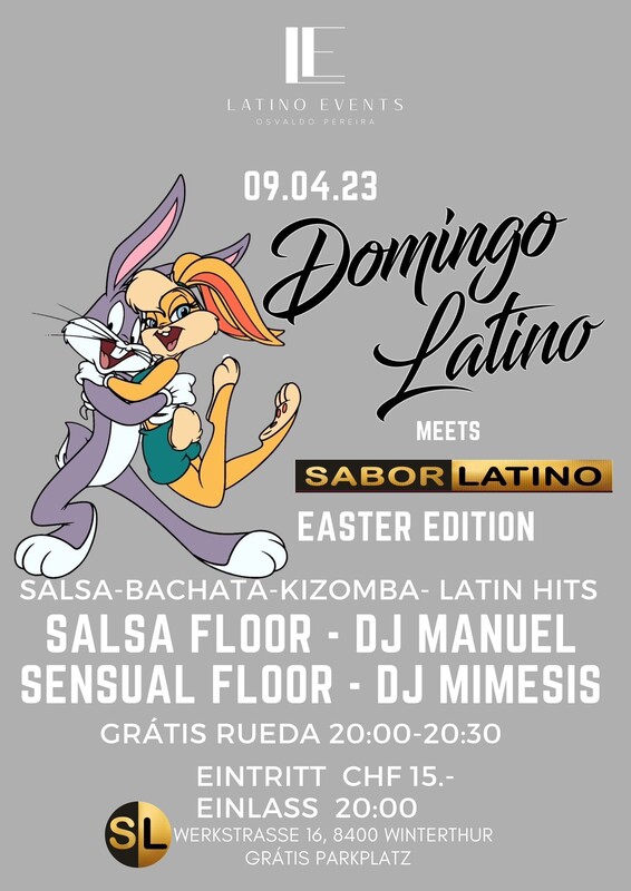 Domingo Latino meets Sabor Latino Hey Leute, seid ihr bereit für die Oster-Party des Jahres? Am Ostersonntag geht's los mit zwei Dancefloors, auf denen DJ Manuel und DJ Mimesis die heißesten Beats aus Salsa, Bachata, Kizomba und Latin Hits auflegen. Vorher könnt ihr euch um 20:00 Uhr beim gratis Rueda Workshop schon mal aufwärmen und ein paar coole Moves lernen. Danach geht's auf die Piste, wo ihr euch zu den Rhythmen austoben könnt - und zwischendurch an der Bar auf Ostern anstoßen natürlich. Und wenn ihr eine kleine Pause braucht, chillt ihr einfach in einer der Lounges. Das wird eine Oster-Party, die ihr nicht so schnell vergessen werdet! https://saborlatino.ch/event/domingo-latino-im-sabor-latino/