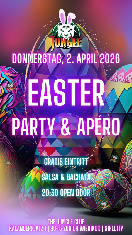 🐰 HAPPY EASTER 🐰 Salsa & Bachata Social Dance mit Apéro❗ 📅 Donnerstag, 2. April 2026 🕒 20:30 Uhr 🤩 Gratis Eintritt 🍕 Gratis Apéro 📍 Kalanderplatz 1, 8045 Zürich Wir freuen uns auf euch💃🕺🪇🐣 www.thejungleclub.ch